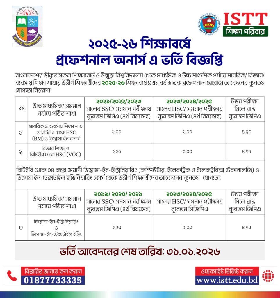 College Code: National University- 6471, BTEB- 50051
